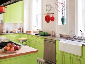 المطبخ.. حاولي دهان مطبخك: وذلك من خلال القيام بدهان القطع الخشبية التي يحويها مطبخك باللون الذي تفضلينه، وذلك إذا كان مطبخك مصنوعا من الخشب، أما إذا كان المطبخ مصنوعا من أية مادة أخري مثل الألومونيوم مثلا؛ فيمكنك أيضا أن تقومي بدهانها باللون المناسب حتى يبدو أكثر تناسبا.