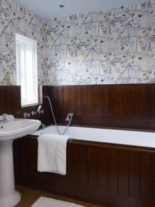 في الحمام اهتمي بورقة الحائط: عند الحديث عن الحمام، فإننا ننصحك في هذه الحالة بضرورة الاهتمام بورق الحائط؛ لأنه من أفضل الأدوات التي سوف تستخدمينها وتقدم لك الطلة التي تعبر عن التغيير الذي ترغبين فيه