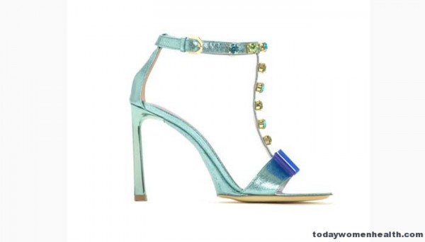 وهناك ألوان أهدأ قليلا لكنها فسفورية أيضا تشمل الأخضر والأزرق والتركواز كما نرى في هذا الصندل المزين بالكريستال من Viktor & Rolf
