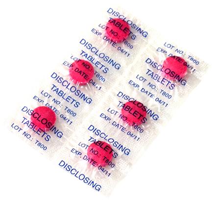 – مضغع اقراص كاشفات البلاك وهى موجودة فى الصيدليات حيث بعد مضغ قرص مثل العلكة وتحريكة جيدا بين الاسنان بمدة 30 ثانية سوف تظهر بقع حمراء على الاسنان فى اماكن وجوج بلاك الاسنان والتى تعرفك بوجود مناطق بلاك الاسنان ثم استعملى الفرشاة والمعجون مجددا فى تلك المناطق حتى تتخلصى من بلاك الاسنان .
